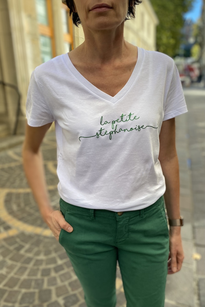 T-SHIRT STEPHA BLANC PAILLETTES VERTE