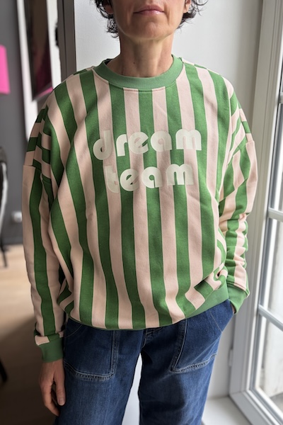 - Message brodé : L'inscription "Dream Team" fièrement affichée sur la poitrine dans une typographie arrondie et minimaliste.