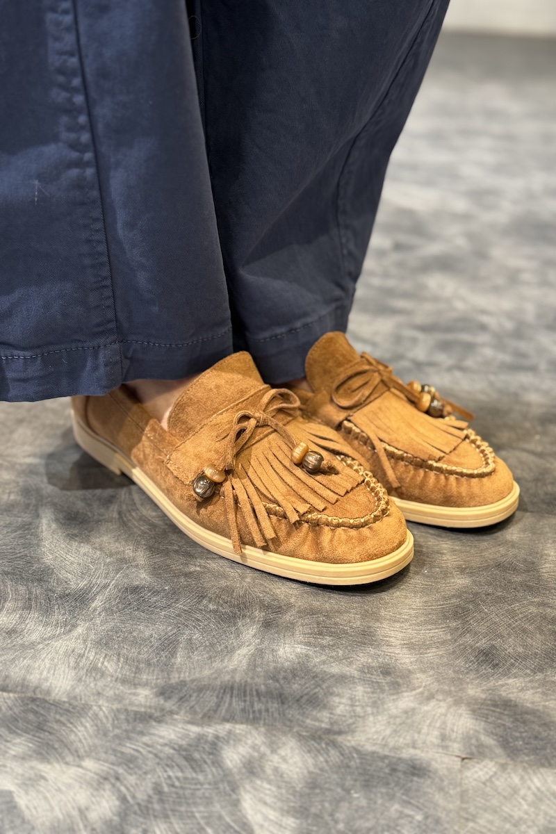 Mocassins en suédine avec franges et nœud.